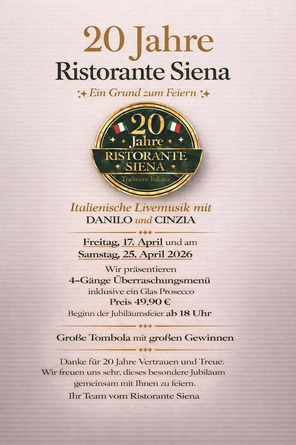 Wir werden dieses Jahr 20! : Jubiläumsfeier am 17 und 25 April 2026